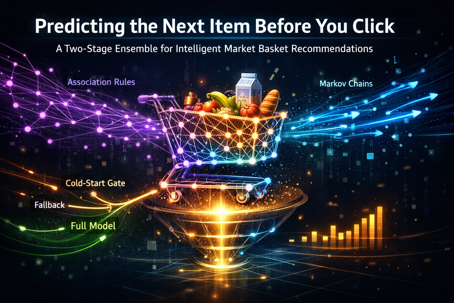 β’ Cart-sequence signals (Markov + position) lift recs beyond popularity baselines.
